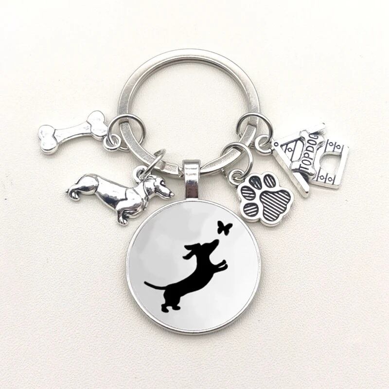 □★新品未使用品★ダックスフント♪シルエット蝶★チャーム☆キーリング♪キーホルダー☆シルバー★犬好き☆プレゼント◇送料無料◇