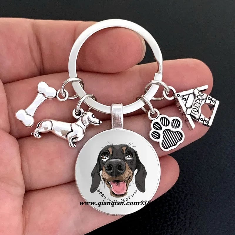 □★新品未使用品★ダックスフント♪お顔★チャーム☆キーリング♪キーホルダー☆シルバー★犬好き☆プレゼント◇送料無料◇
