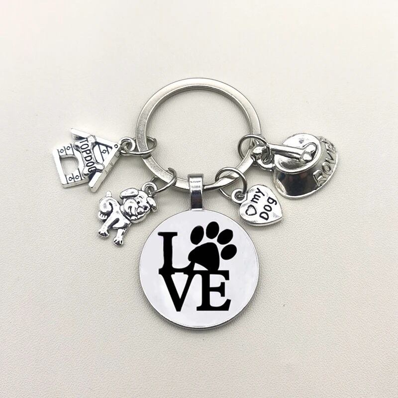 □★新品未使用品★わんちゃん♪L肉球VE★チャーム☆キーリング♪キーホルダー☆シルバー★犬好き☆プレゼント◇送料無料◇