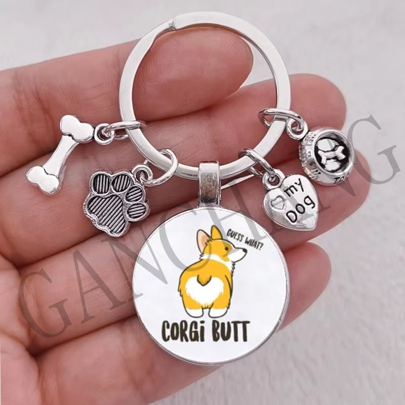 □★新品未使用品★コーギー♪後ろ姿★チャーム☆キーリング♪キーホルダー☆シルバー★犬好き☆プレゼント◇送料無料◇