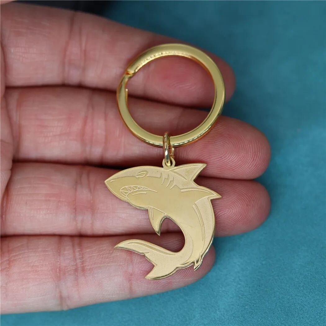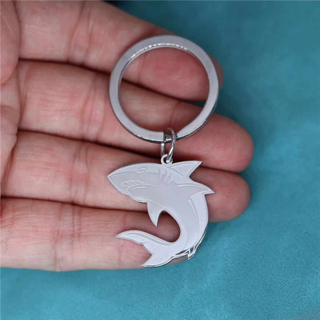 □★新品未使用品☆サメ♪シャーク♪かっこいい★2色☆キーリング♪キーホルダー☆ステンレス★動物好き☆プレゼント◇送料無料