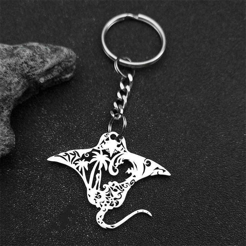 □★新品未使用品☆マンタ♪かっこいい★2色☆キーリング♪キーホルダー☆ステンレス★動物好き☆プレゼント◇送料無料◇