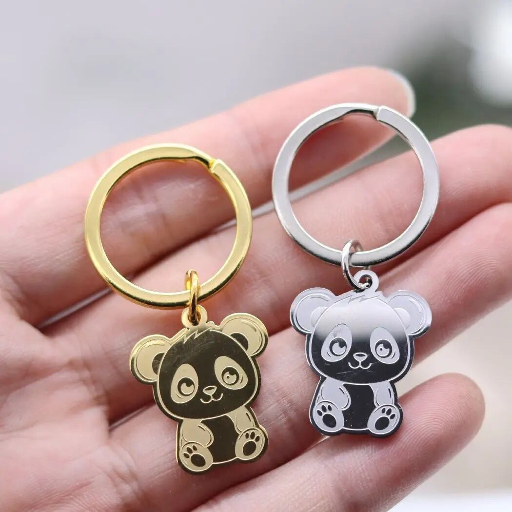 □★新品未使用品☆パンダ♪かわいい★2色☆キーリング♪キーホルダー☆ステンレス★動物好き☆プレゼント◇送料無料◇
