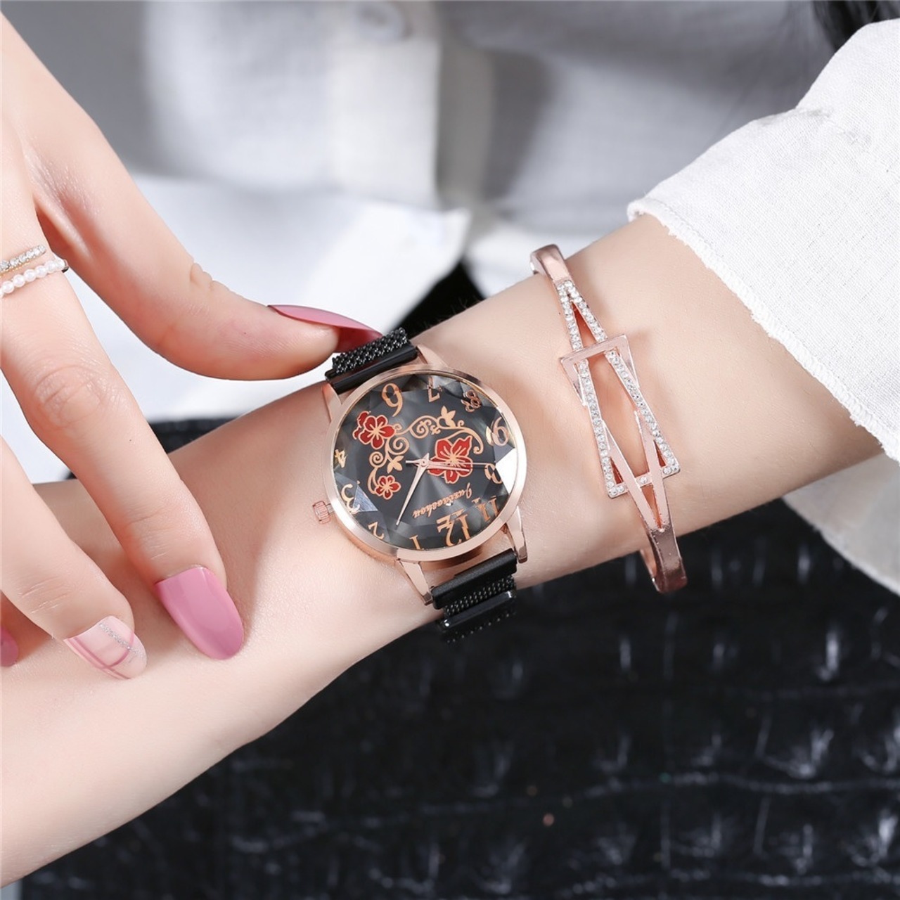 □レディース腕時計♪お花が素敵!!エレガントなデザイン◇ステンレスベルトがおしゃれ★プレゼント◆新品未使用品◇送料無料◇