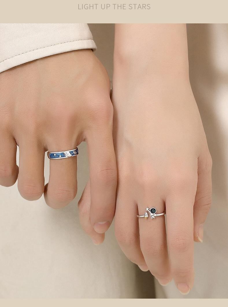 惑星と宇宙飛行士のユニークなデザインリングです。