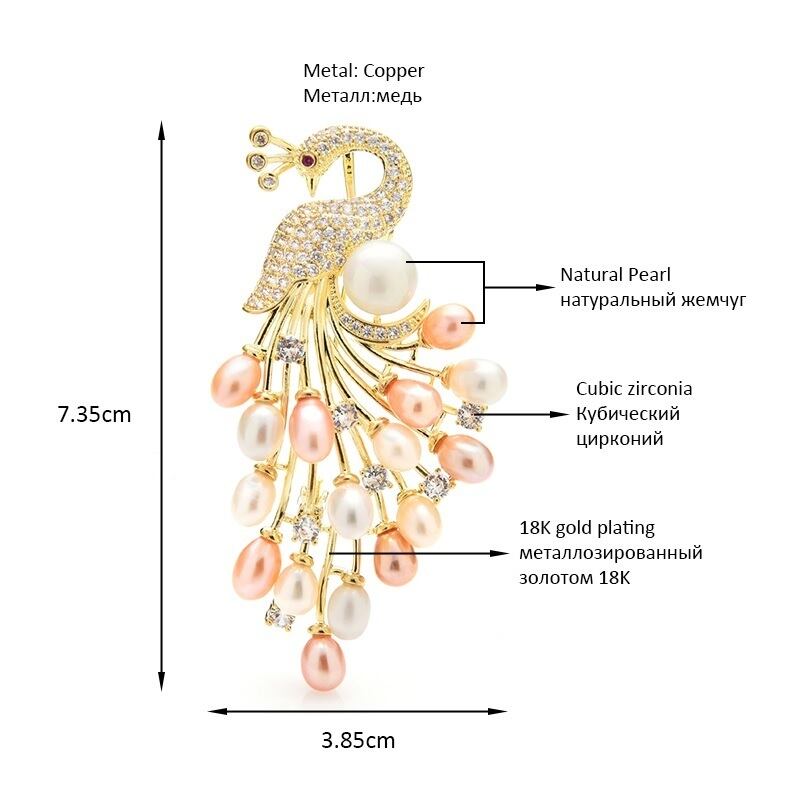 □高級感♪孔雀ブローチ☆パール♪クリスタル♪ゴールド★ピンブローチ★鳥☆動物☆プレゼント♪パーティー◆新品未使用品◇送料無料◇