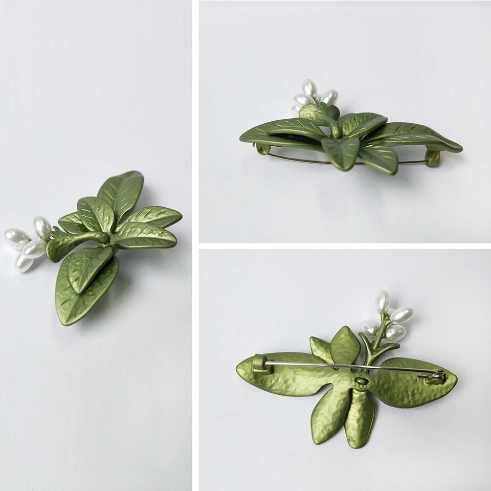 □リーフブローチ★ピンブローチ★パール使用★アクセサリー★ジュエリー★植物★葉っぱ★グリーン★緑☆新品未使用品☆送料無料☆★