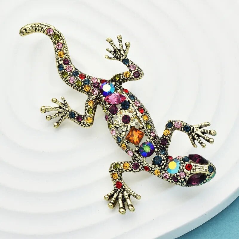 □珍しい!!トカゲ★ブローチ★ピンブローチ★ラインストーン♪カラフル★プレゼント用にも♪動物☆新品未使用品☆送料無料★