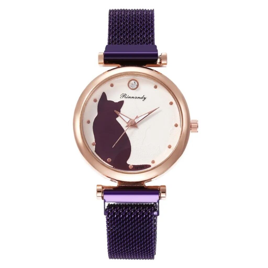 □猫時計♪レディース腕時計★ねこシルエット♪おしゃれ!!可愛い☆メッシュベルト♪5色★プレゼント☆新品未使用品☆送料無料★
