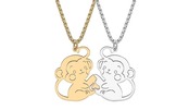 □サル♪ペアネックレス☆シルバ-&ゴールド★ステンレス☆動物・アニマル★アクセ☆プレゼント★新品未使用☆送料無料☆