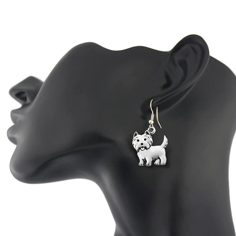 【ウエスト・ハイランド・ホワイト・テリア】デザインのドロップピアスです。