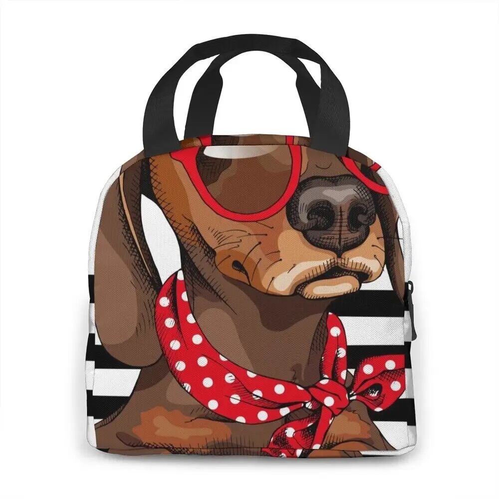 □大容量!!ダックスフント♪サングラス★保冷バッグ☆犬好き★DOG♪イラスト★ボーダー♪鞄☆お出かけグッズ★新品未使用品★送料無料◇