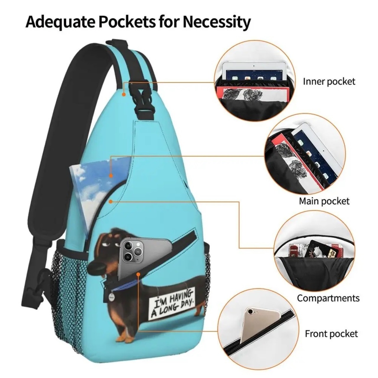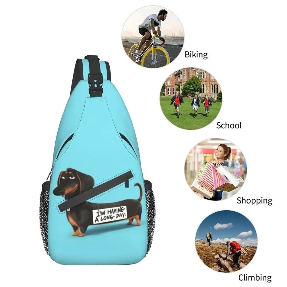 □ダックスフント☆ショルダーバッグ★水色♪クロスオーバー☆犬好き★メンズ♪鞄☆お出かけ♪日常★新品未使用品★送料無料◇
