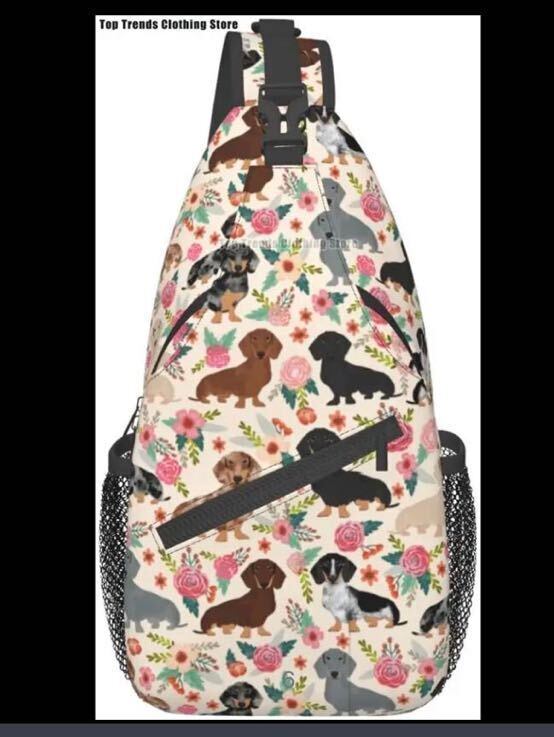 □ダックスフント☆ショルダーバッグ★フラワーベージュ♪クロスオーバー☆犬好き★メンズ♪鞄☆お出かけ♪日常★新品未使用品★送料無料◇