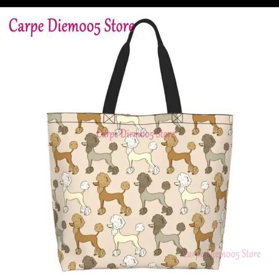 □プードル☆トートバッグ★ベージュ♪イラスト☆犬好き♪大容量★カジュアル♪鞄☆お出かけ♪日常★新品未使用品★送料無料◇