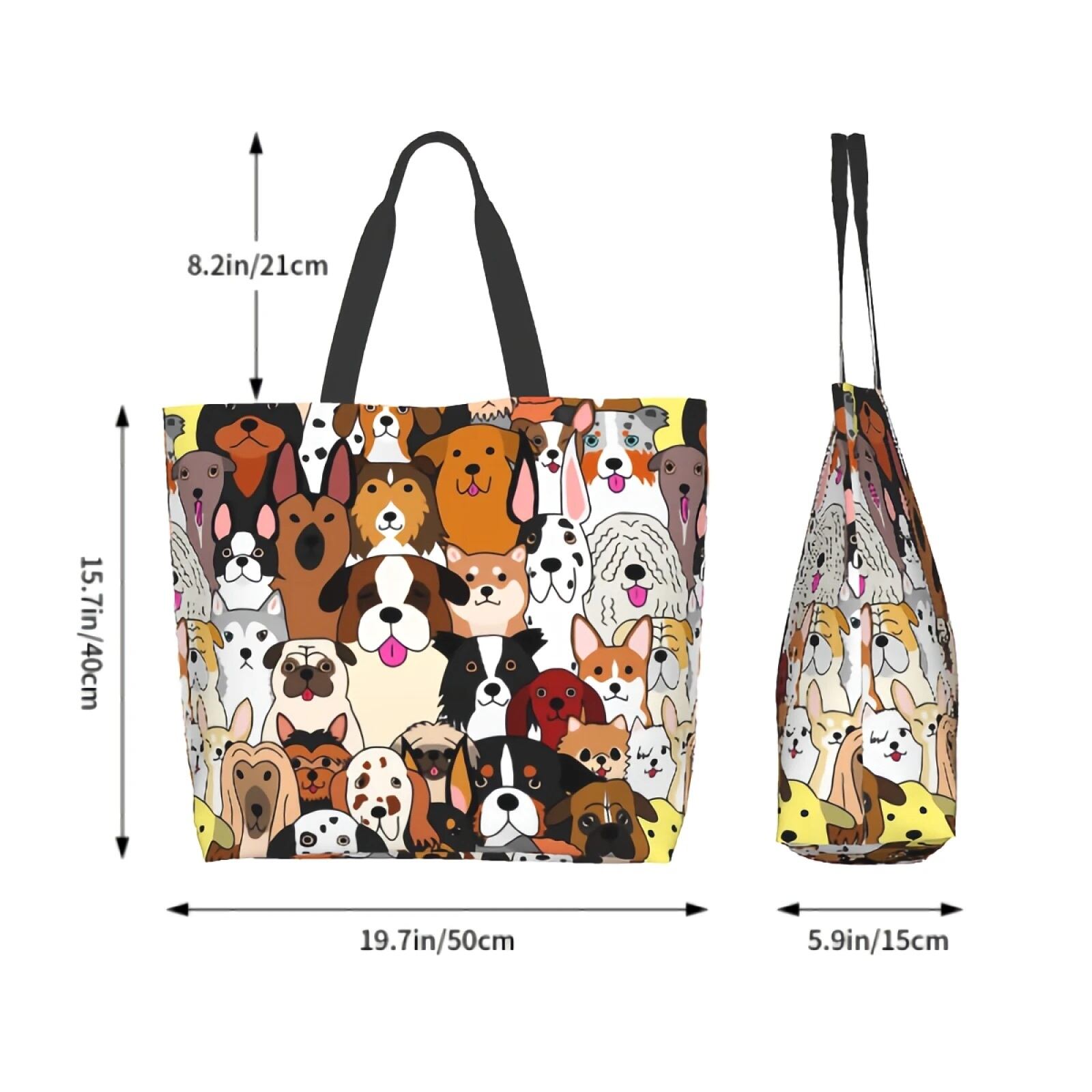 □わんちゃんいっぱい☆トートバッグ★イラスト♪お顔☆犬好き♪大容量★カジュアル♪鞄☆お出かけ♪日常★新品未使用品★送料無料◇