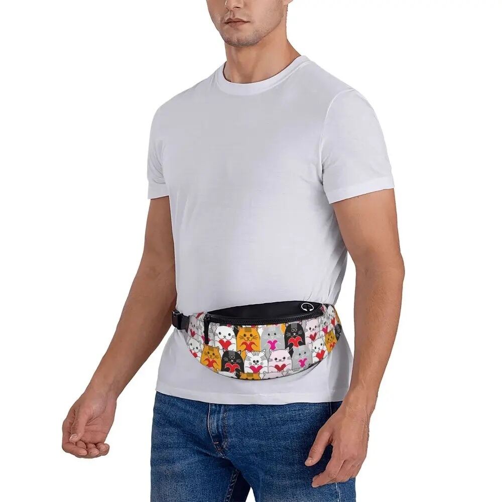 □ネコちゃん☆ウェストバッグ★イラスト♪ハート☆いっぱい!!ユニーク☆猫好き★鞄♪ショルダーバッグ☆新品未使用品★送料無料◇