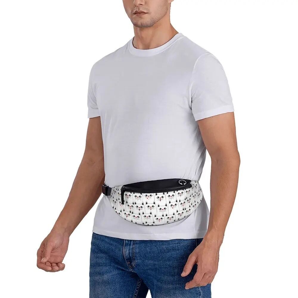 □ネコちゃん☆ウェストバッグ★プリント♪白☆ユニーク♪いっぱい!!☆猫好き★鞄♪ショルダーバッグ☆新品未使用品★送料無料◇