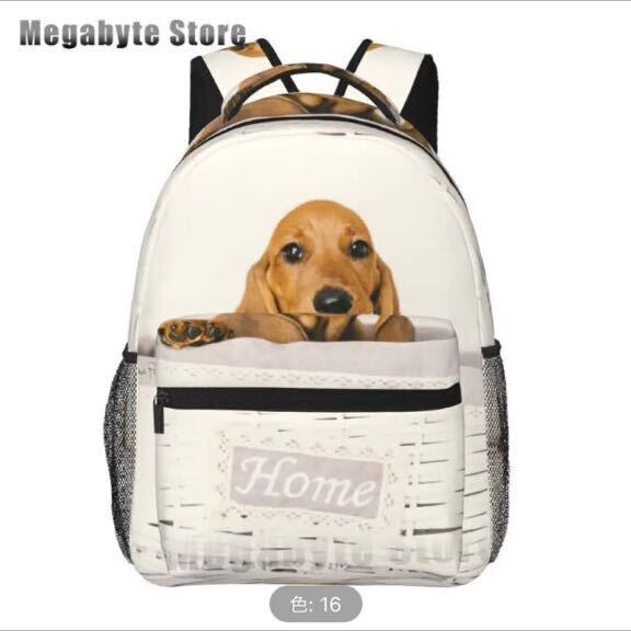 □ダックスフント♪リュック☆スクールバッグ★プリント♪ホワイト♪かわいい☆犬好き★メンズ♪鞄☆メッシュ★新品未使用品★送料無料◇