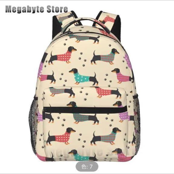 □ダックスフント♪リュック☆スクールバッグ★ベージュ♪シルエットいっぱい☆犬好き★メンズ♪鞄☆メッシュ★新品未使用品★送料無料◇