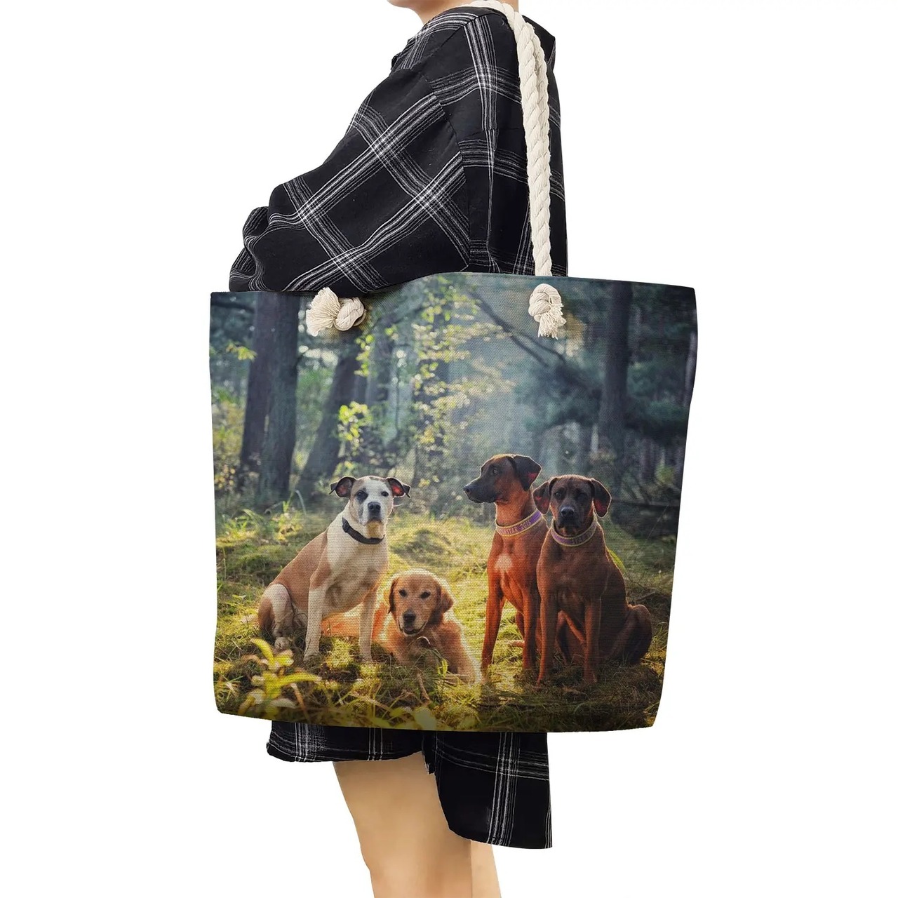 □ローデシアン・リッジバック☆リネン♪トートバッグ★プリント♪仲間☆犬好き★大容量♪鞄☆45㎝★新品未使用品★送料無料◇