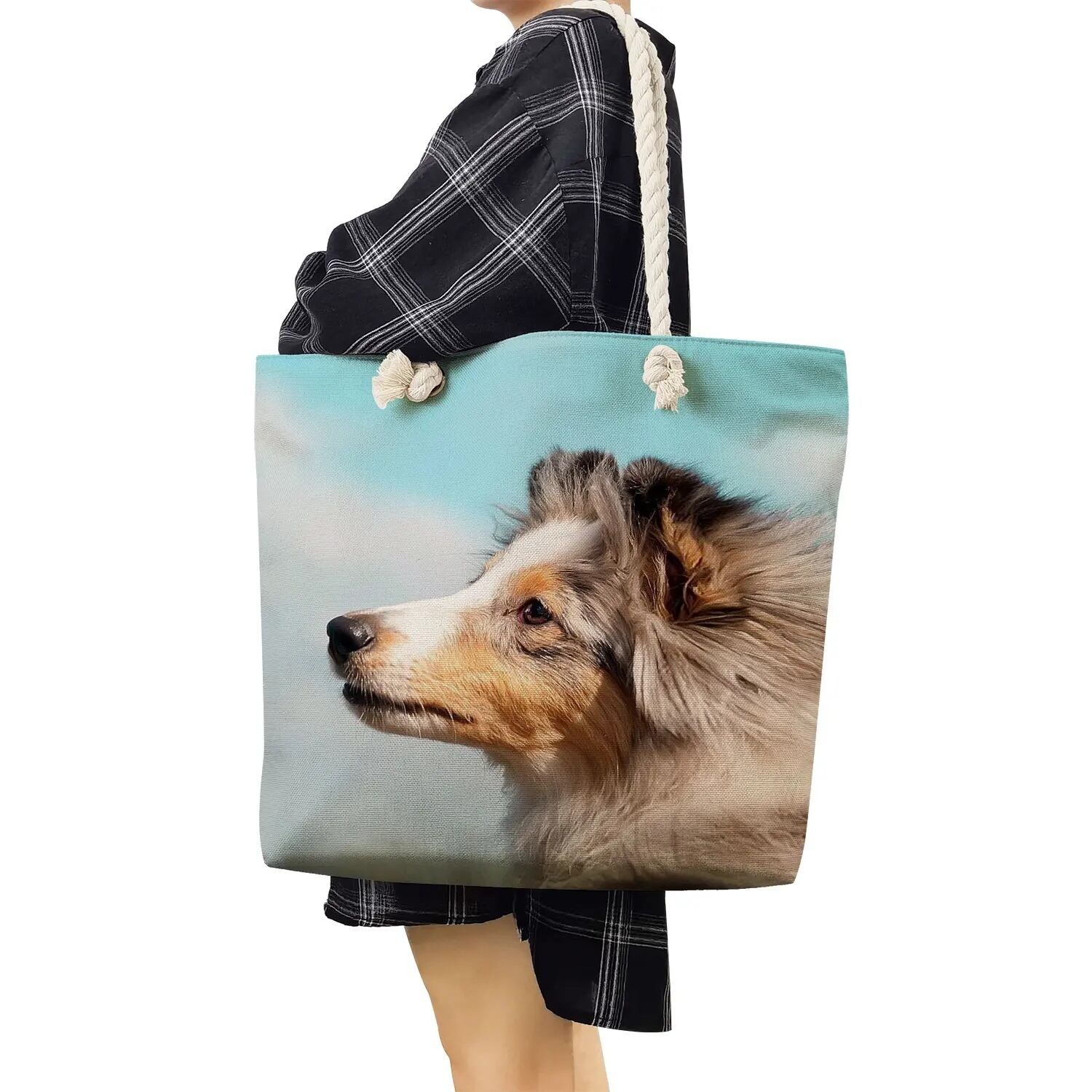 □ラフ・コリー☆リネン♪トートバッグ★プリント♪♪☆犬好き★大容量♪鞄☆45㎝★新品未使用品★送料無料◇