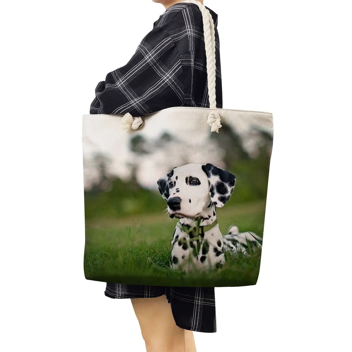 □ダルメシアン☆リネン♪トートバッグ★プリント♪困り顔☆犬好き★大容量♪鞄☆45㎝★新品未使用品★送料無料◇
