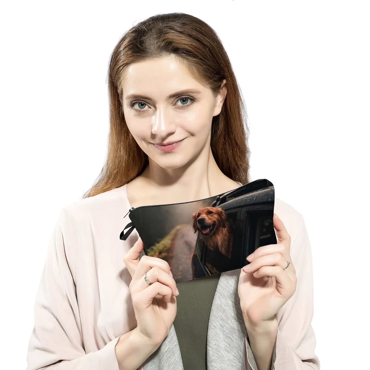 □アイリッシュ・セッター☆ポーチ♪小物入れ★プリント♪♪車から☆犬好き★化粧バッグ☆チャック★新品未使用品★送料無料◇