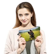 □ジャーマン・シェパード・ドッグ☆ポーチ♪小物入れ★プリント♪花畑☆犬好き★化粧バッグ☆チャック★新品未使用品★送料無料◇